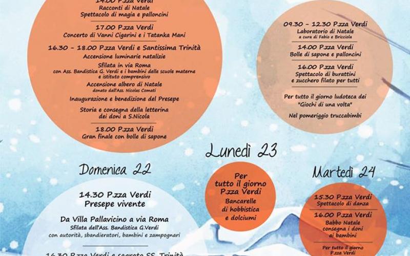 16:30/18:00 Accensione luminarie natalizie, sfilata lungo via Roma con Associazione Bandistica G. Verdi con i bambini scuole materne di Busseto e Frescarolo e alunni Istituto Comprensivo di Busseto