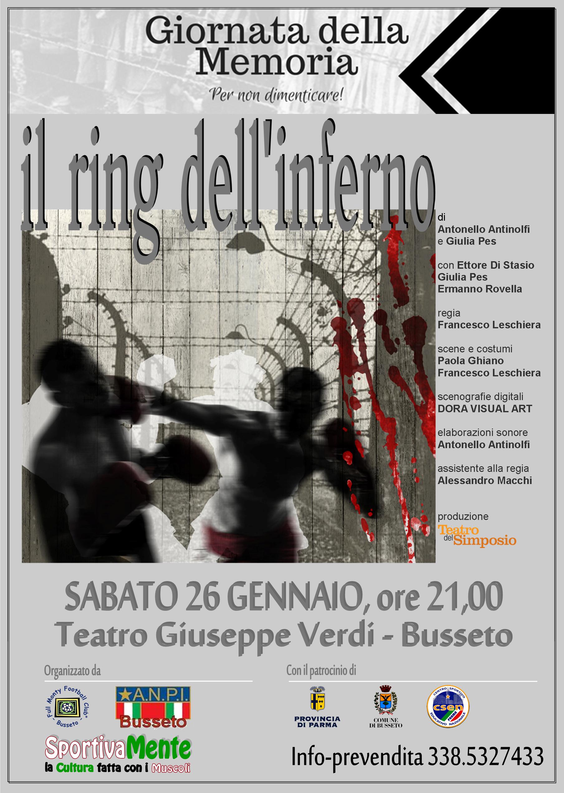 L’ANPI di Busseto, in collaborazione con la Full Monty presenta il 26 Gennaio 2019 in occasione del Giorno della Memoria lo spettacolo “Il ring dell'inferno” nell'ambito di SPORTIVAMENTE, nel Teatro Verdi di Busseto, alle ore 21,00.
